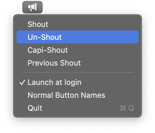 Fancy names not your style? Switch to normal names (Shout -> Uppercase, etc).